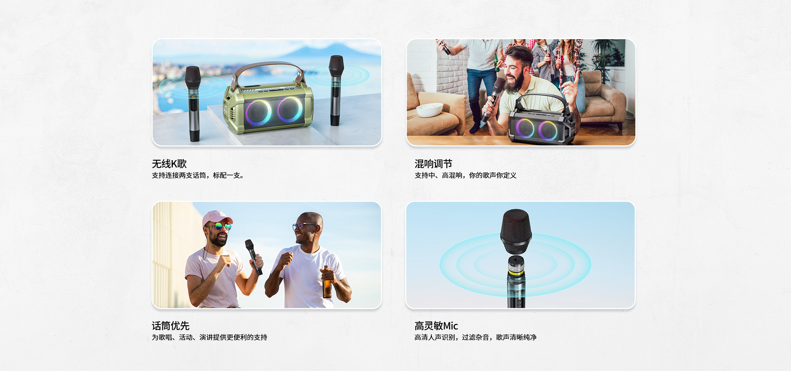 豐富飽滿的聲音,高靈敏拾音性能,讓歌唱更悅耳。