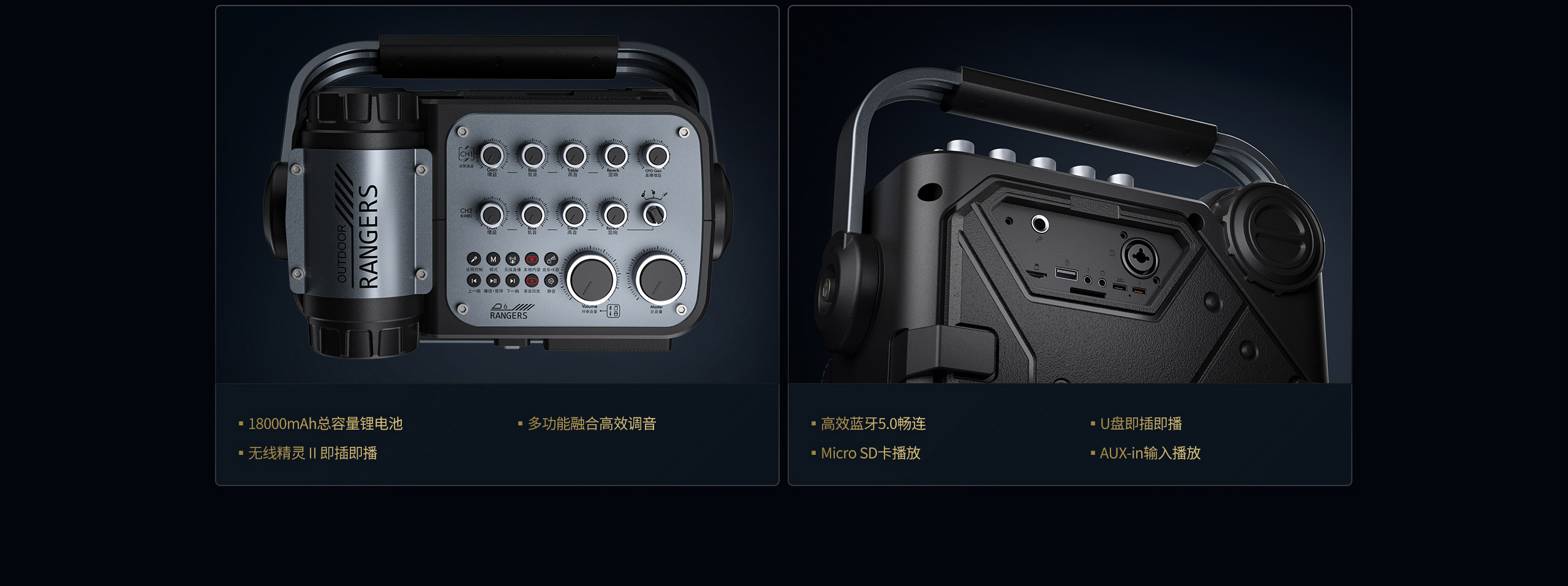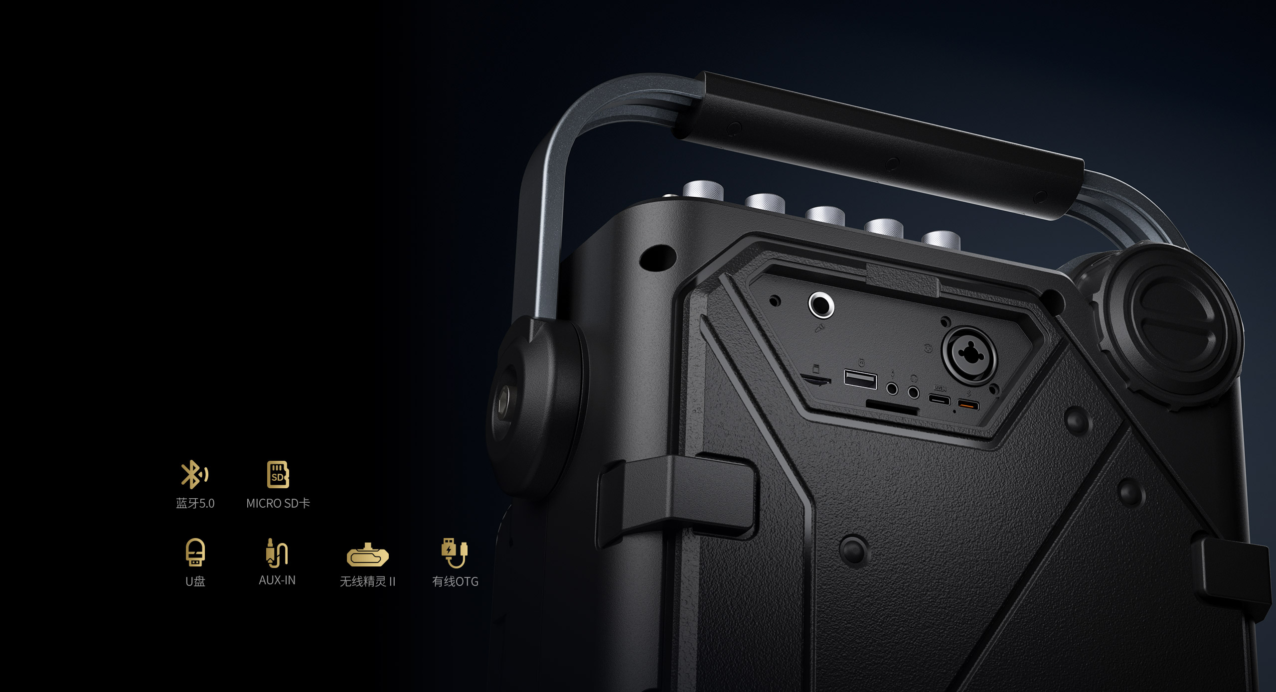 內置4組動力鋰電池,已為戶外路演做好準備,只管縱情放聲高歌。