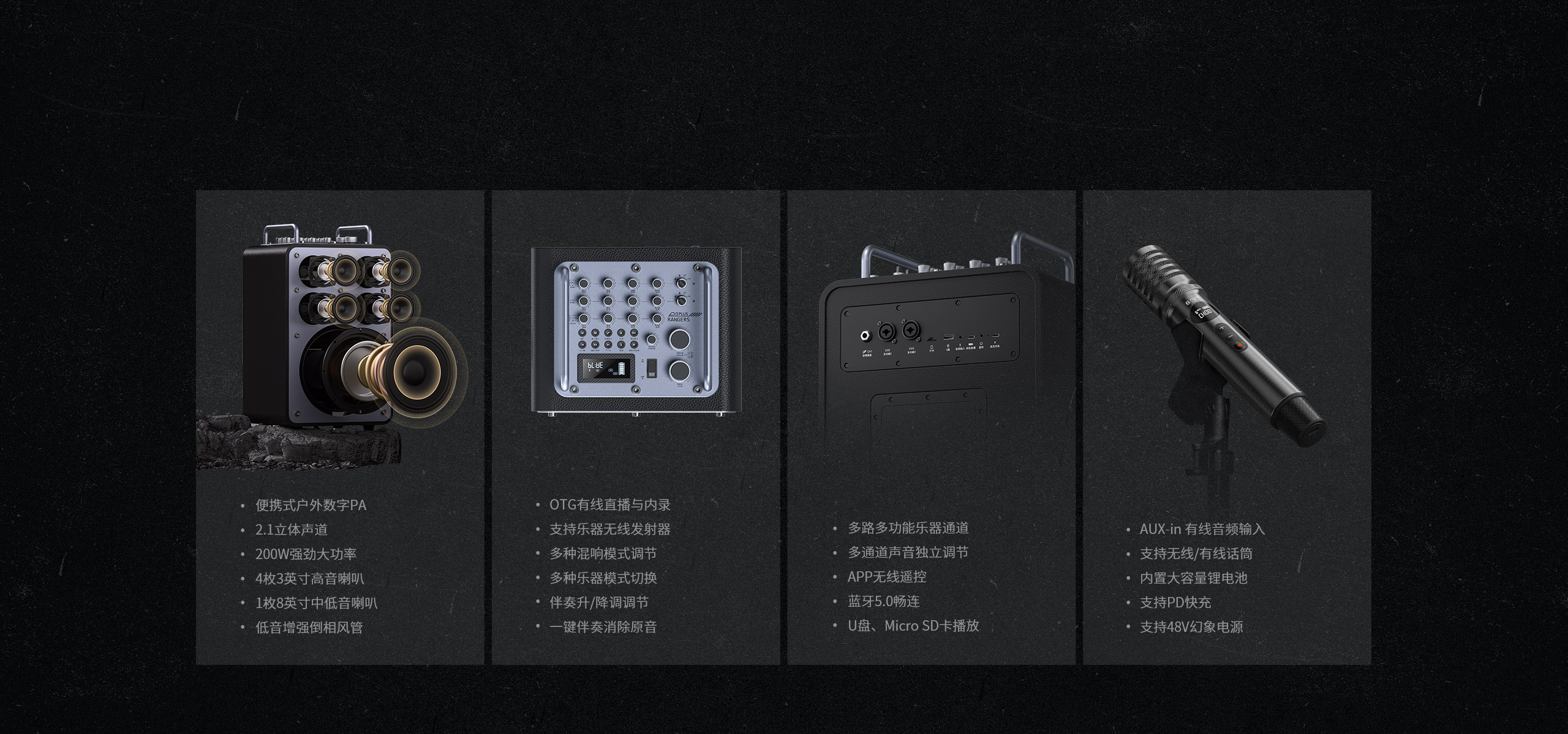 200W澎湃大功率,專為戶外樂器演奏設計,聲音響徹四方。