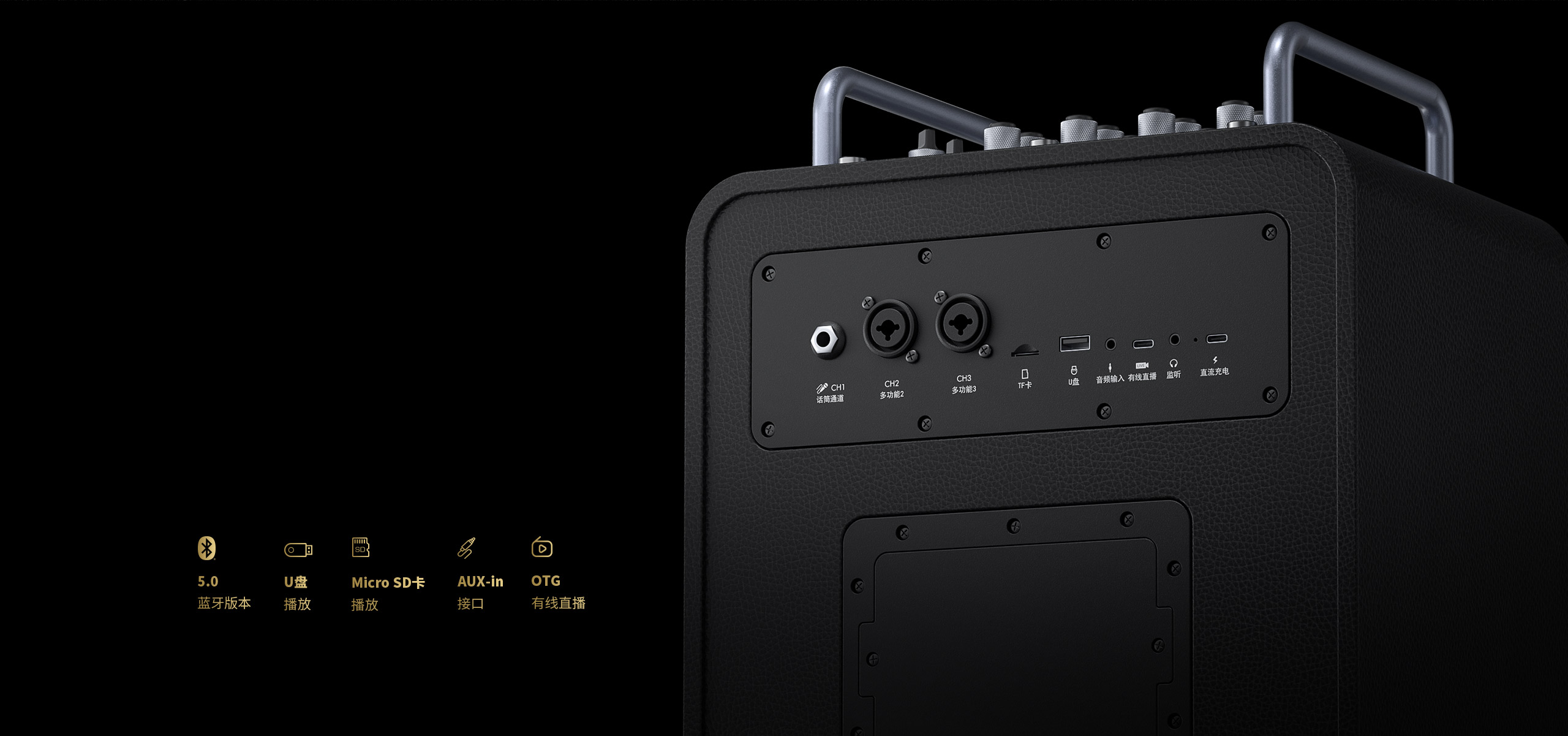 涵蓋藍牙5.0、U盤、Micro SD卡、AUX-in、有線OTG,