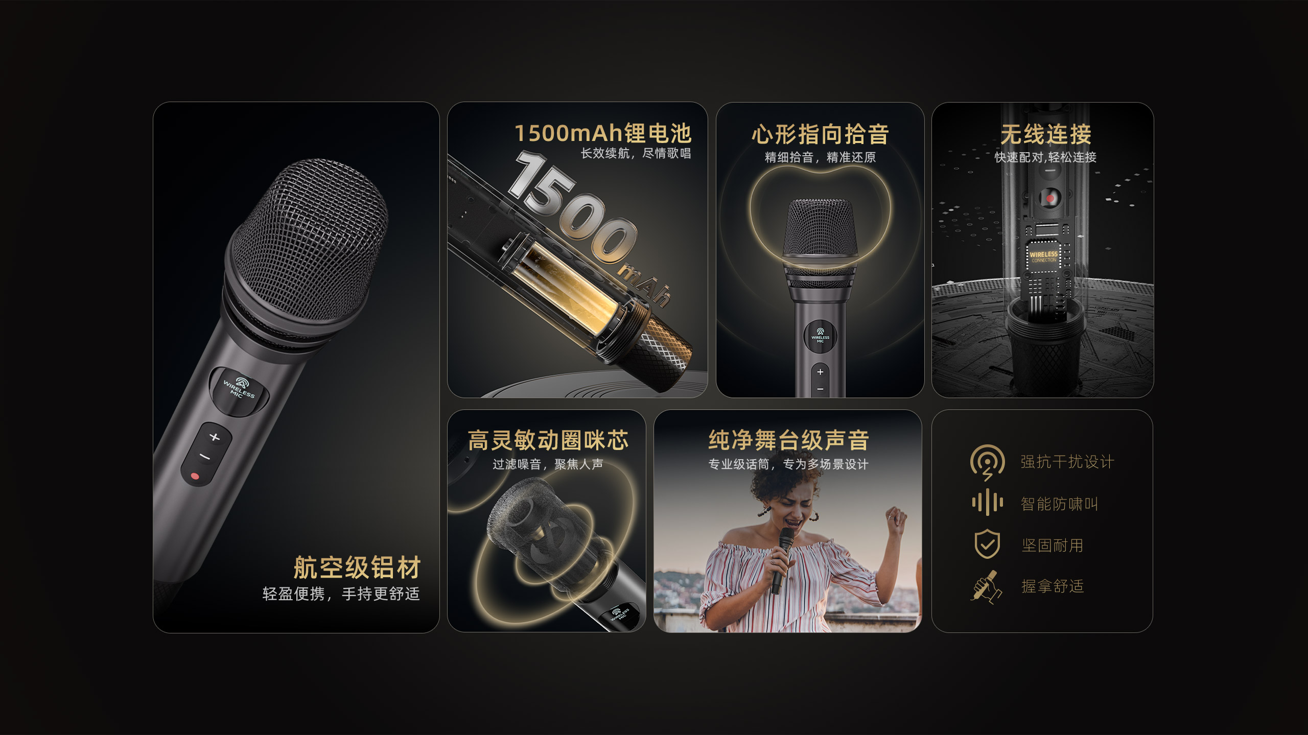 專業級話筒,專為多場景設計,無論是家庭K歌、朋友聚會、戶外活動還是路演,都能輕松應對。